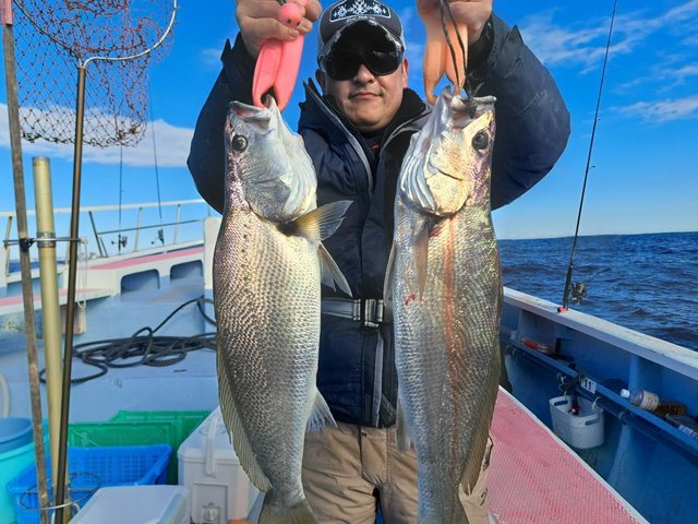 0.30~3.20kg 0~30匹 ★★★活き海老エサでの一つテンヤマダイ釣り♪★★★ 活きエビエサは、こちらで準備しております。 エサの追加料金は頂いておりません。 (準備できない場合は冷凍エビとなります。) テンヤはご用意をお願い致します。 <マダイ船> 一つテンヤでのマダイ釣りです。大鯛浮上!数も伸び絶好調!前半は風強くバラし等目立ちましたが、次第に落ち着き魚の上がりも良くなってくれました。TOP30匹、次いで28匹、22匹、20匹。後半は800g前後主体とサイズ感もよく、最大は3.2kg。反応多く、次回も期待! 外道:ハナダイ、カサゴ、ウマヅラ、カワハギ、イシダイ、オオニベ、ショゴ。 ***キャビン内、店内はマスクの持参着用をご協力お願い致します*** <今後の予定>***集合時間まえにはお越しください。 午前船:4時30分船宿集合…マダイ船、ヒラメ船。 午後船:10時30分船宿集合…マダイ船。 定休日:第2火曜日(1/14) (*状況により予定が変わることもございます。前日に確認のお電話をお願い致します。) <ご予約・お問い合わせはこちらへ> 090-2155-0500(午前9:00~午後8:00まで) キャンセルにより他のお客様へご迷惑をおかけしてしまう事もありますので、キャンセルの無いようご予約をお願い致します。 <乗船名簿について> ①お名前(フルネーム)、②住所、③緊急連絡先の電話番号、④年齢、⑤性別 ①~⑤まで記入し可能であれば、持参お願い致します。