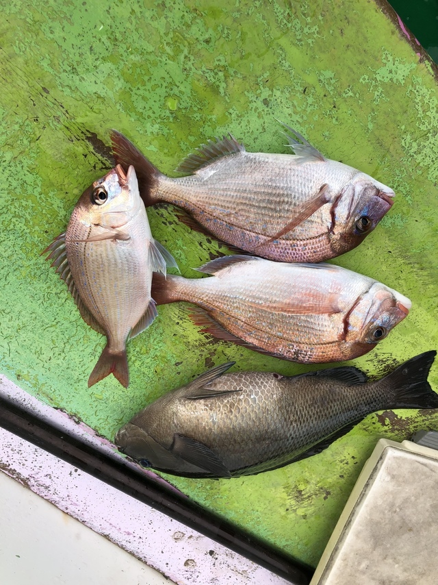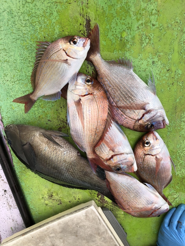 (チダイ)20~35cm 9~25匹 マダイ アジ イナダ サバ コマセ五目。 ハナダイ、 他マダイ!アジ!イナダ!サバ! 流れ速くチョイ周りの繰り返しでした、 反応は良かったので潮落ち着けばじっくりと狙えそうです!