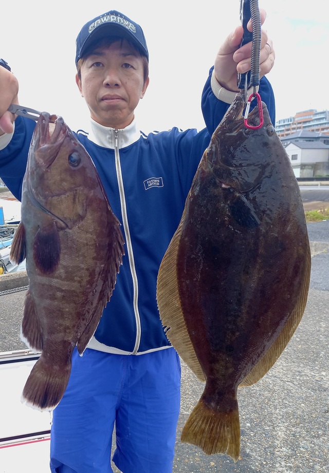 1.20~5.80kg 1~5匹 ヒラメ集合時間は3時45分です。 明日はヒラメとアジハナダイ五目(コマセ) 午後テンヤマダイで出船予定です! (ハタ、カンパチ、カサゴ、ソイ、カサゴ、マトウダイ混) (ハタ、カサゴ、ホウボウ、マトウダイ混) 本日も5.8キロ筆頭に5.2、5、4.3を2匹、4キロ3匹 、4キロ~3キロ台、2キロ台後半が多数。 肉厚ヒラメを釣りあげて賑わいました! 明日もはりきって行くど~(ノ・∀・)ノ 変更、お知らせあればまたこちらで載せます。 人数集まれば出船致します。 人数が集まらないと出船できません。 人数と釣果次第で変更します。 天候の変わりやすい季節です、中止等お知らせで載せますが、遅い時間になる時もありますのでご心配の方は電話でお問い合わせ下さい。 アングラーズからも予約(一部)出来ます! 初回のお客様は1000円引きしてます。 クーポン取得しないと使えません。 ↓CLICK https://ships.anglers.jp/ships/167?isAllPlansVisible=true 今後はアマダイ、アジハナダイ五目(コマセ)、テンヤマダイ、沖根魚(アラ鬼カサゴ) 午後テンヤマダイ、アジハナダイ五目(コマセ) 出船予定です。 コマセ(アジ)土日祝の午後のみもリクエストして下さい。 インスタ始めました\(^o^)/良かったら見て下さいね~。 初めての方や慣れていない方は是非、船長の見える場所へお座り下さい! 予約時すぐに電話に出れない時がありますが折り返します! 千葉東金横芝ICから匝瑳市(旭市隣)まで高速道路が延長になりました。最終、匝瑳ICで降りて右折、海沿いで是非いらっしゃって下さい。早くなりますよ~! 午前船のお客様はお弁当付いてます(ノ・∀・)ノ 集合時間 ヤリイカ、アカムツ、沖根魚、アマダイ3時 ヒラメ3時45分 マダイ、アジハナダイ五目4時 時間厳守でお願いいたします! もし遅れる等の場合は早急にご連絡下さい。他のお客様を待たせてしまう、出船時間も遅れてしまいます。 リクエスト、人数天候等により変更あります! テンヤは遊動式しかけで!初心者でも釣れますよ~! 初心者の方、予約時お知らせ下さい。 救命胴衣(無料)、レンタル貸竿(基本無料。有料も有)ございます。