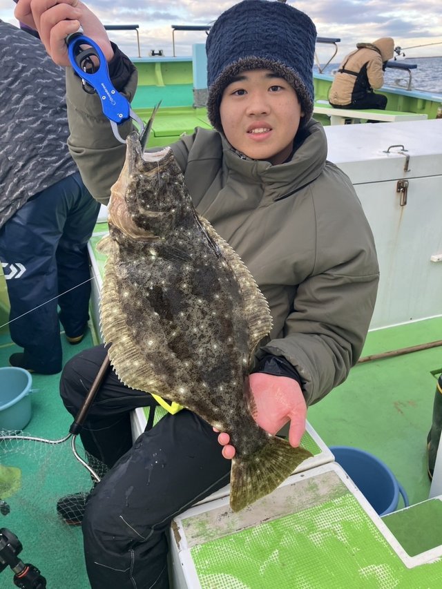 0.50~5.00kg 0~7匹 年始は都合により3日(金)からアカムツとヒラメで出船致します!午後テンヤマダイへも~(ノ・∀・)ノ 集合時間(通常通り) 3日(金)ヒラメ4時15分アカムツ3時30分 年明けからはヒラメとアカムツ、午後テンヤマダイ又はアイナメ五目で出船予定です!ヤリイカは様子を見て募集致します!大晦日にヒラメ5キロが釣れて有終の美を飾りました。先日から潮が全然流れず…が続きお正月のお魚もイマイチでしたがせっかく来て下さったお客様には残念な思いをさせてしまいました。 行き届かない事も多数有りました事、お許し下さい。 今年も沢山のお客様にご乗船戴きまして心より感謝致します。また来年もどうぞよろしくお願い致します。 皆様にとって良いお年をお迎え下さい。 一年間ありがとうございました。 1月3日(金)からはヒラメとアカムツ、午後テンヤマダイ 餌の都合上、ご予約は前日までにお願い致します。 初めての方や慣れていない方は是非、船長の見える場所へお座り下さい! 予約時すぐに電話に出れない時がありますが折り返します! 人数集まれば出船致します。 人数が集まらないと出船できません。 人数と釣果次第で変更します。 千葉東金横芝ICから匝瑳市(旭市隣)まで高速道路が延長になりました。最終、匝瑳ICで降りて右折、海沿いで是非いらっしゃって下さい。早くなりますよ~! 天候の変わりやすい季節です。 変更あればこちらでお知らせ致します。 前日前々日にご確認のご連絡下さい! 今後はヒラメ、沖根魚(アラ、鬼カサゴ)、テンヤマダイ、アマダイ、アジハナダイ&イサキ五目(コマセ) 午後テンヤマダイ、カサゴ五目 午前船のお客様はお弁当付いてます(ノ・∀・)ノ 集合時間 ヒラメ4時 アカムツ、沖根魚3時15分 アマダイ3時15分 マダイ、アジハナダイ&イサキ五目4時 時間厳守でお願いいたします! もし遅れる等の場合は早急にご連絡下さい。他のお客様を待たせてしまう、出船時間も遅れてしまいます。 リクエスト、人数天候等により変更あります! テンヤは遊動式しかけで!初心者でも釣れますよ~! 初心者の方、予約時お知らせ下さい。 救命胴衣(無料)、レンタル貸竿(基本無料。有料も有)ございます。