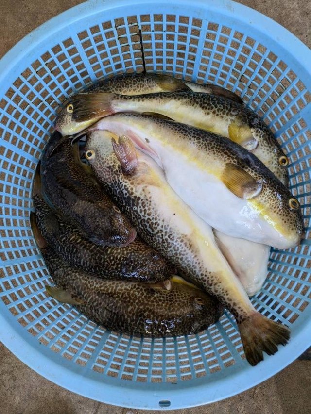38~42cm 3~19匹 ショウサイフグで出船しました。外道にマダコ。