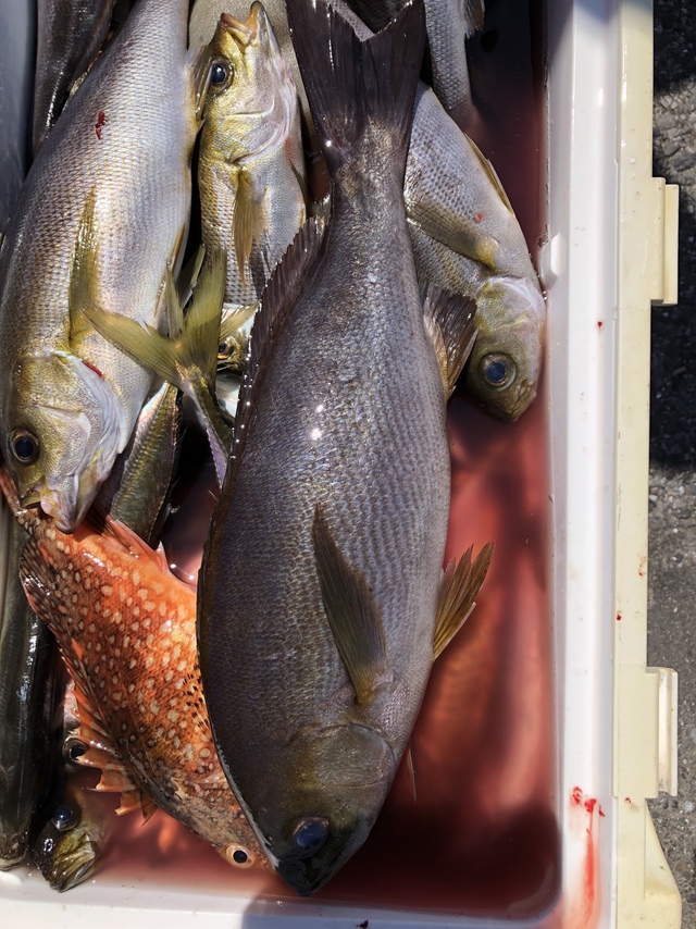 (マアジ)29~43cm 5~31匹 ハナダイ メバル カサゴ サバ イワシ コマセ五目。シャクリが楽しいコマセ五目。 誘って誘ってジャンボハナダイ・ジャンボアジを狙いましょう。 ゲストフィッシュも多彩。 コマセカゴFL60号。 ウイリー3〜4本針。 ハリス2〜3号。 クッションゴム1.2mm20cm。 本日もありがとうございました。 次回のご乗船もお待ち致しております。