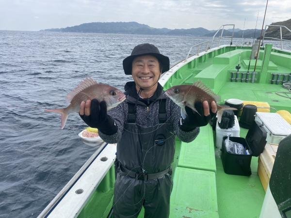0.60~2.00kg 0~4匹 アジ 16~26cm 25~71匹 カワハギ 16~29cm 7~20匹 アジ 17~30cm 7~32匹 アジ 17~28cm 9~39匹 【アジ】 ●船長のコメント● スタートは中アジ、中盤は小振り、ラストは中アジとなりまして、皆様お土産になりました。 【カワハギ】 ●船長のコメント● 一日を通して良型交りで釣れました。 【午前アジ】 ●船長のコメント● 好調にアタリの出る時間もありました。 【午後アジ】 ●船長のコメント● 後半は小中型が交りとなりましたが、前半型良くおみやげ十分となりました。 【全日マダイ】 ●船長のコメント● 今日もポイントを探しながら釣りました。中盤から少しアタリが出ましたが数が伸びませんでした。型はまずまずでした。