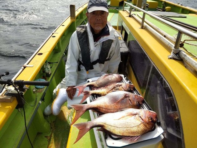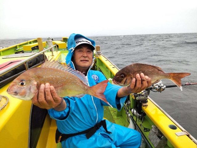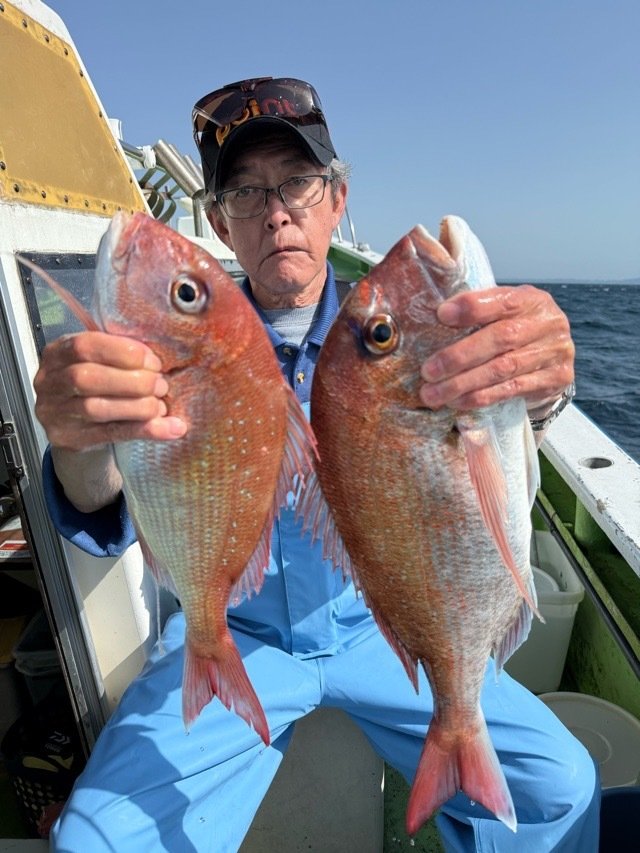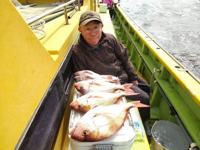 0.30~2.00kg 0~2匹 アジ 15~26cm 15~70匹 カワハギ 16~28cm 0~13匹 アジ 18~28cm 3~28匹 アジ 20~28cm 0~13匹 【アジ】 ●船長のコメント● 釣れる時間が短く、盛り上がりに欠けましたが、おかず分だけは・・・。 【カワハギ】 ●船長のコメント● 風弱く釣り日和。朝から流すたびに地味に釣れ続きました。 【午前アジ】 ●船長のコメント● 型良く、アタリの続く時間も。 【午後アジ】 ●船長のコメント● 移動を繰り返すも良いポイントに入れず。 【全日マダイ】 ●船長のコメント● 朝のうちは型狙いでした。浅場から深場まで狙いました。後半は小振り中心に釣れました。