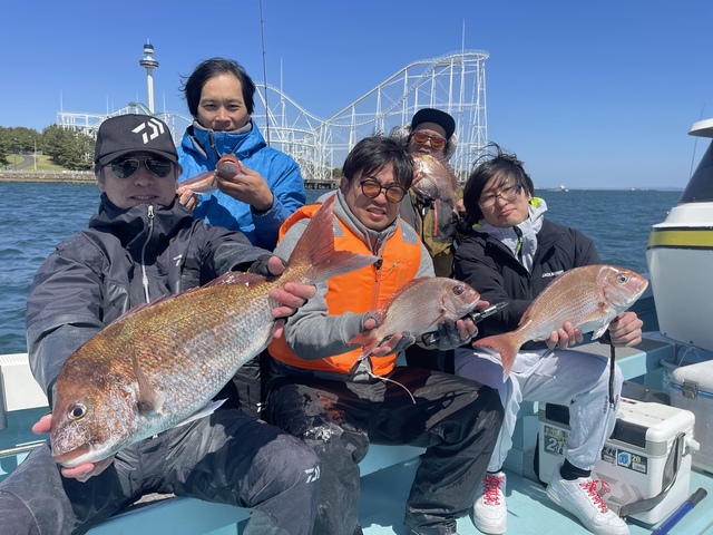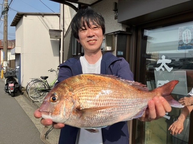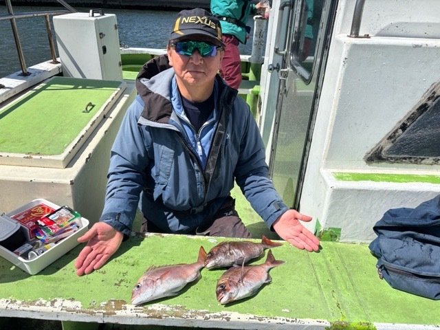 (マダイ)本日は、Tさま御一行様とタイ五目釣りに行ってきました。 が、 今日は一日を通してフグの猛攻に悩まされ、 なかなか本命にたどり着けず……結果として撃沈となってしまいました。 せっかく楽しみに乗船していただいたみなさまに、申し訳ない気持ちでいっぱいです。 次回も頑張りますので、 よろしくお願いします。