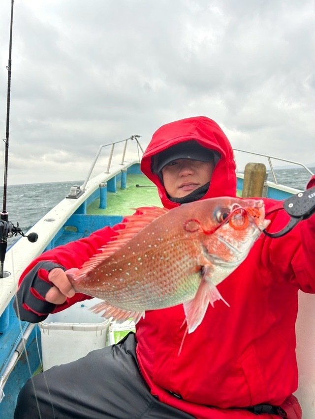 0.60~0.80kg 0~1匹 BakuBaku旬の釣り船 3月29日(土) ターゲッ:マダイ コース:乗り合い 釣果:0~1枚0.6~0.8kg 外道:- 本日は、雨風強い中、沢山のお客様にご乗船頂きましたが、波風が強まり早上がりとさせていただきました。 真鯛は、一瞬の時合を物にした3名のお客様がゲット?? #村本海事#旬の釣船#タイラバ