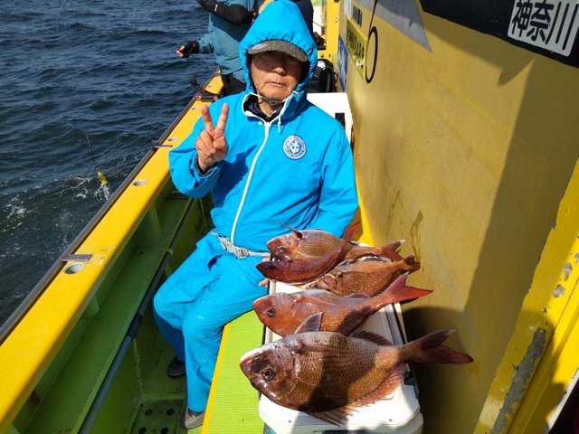 0.40~2.00kg 0~3匹 アジ 16~26cm 40~89匹 カワハギ 16~30cm 0~14匹 アジ 16~28cm 5~42匹 アジ 17~28cm 2~15匹 タチウオ 70~90cm 0~3匹 【アジ】 ●船長のコメント● 一日を通してアタリ良く小振り主体にときどき中アジという感じで釣れ、皆様お土産になりました。 【カワハギ】 ※3隻の高低。 ●船長のコメント● 3連休陽気良く釣り日和が続き、大勢のお客様にお越しいただき皆様楽しめました。 【午前アジ】 ●船長のコメント● 前半は小振り中心にアタリ、移動後は型は良かったのですが今一つ。 【午後アジ】 ●船長のコメント● 近場のポイントを攻め、中アジ主体に釣れました。 【午前タチウオ】 ●船長のコメント● 今日はテンヤで挑戦のお客様多く、観音崎で釣りました。反応は出ていましたが難しい釣りでした。 【午後マダイ】 ●船長のコメント● 今日も前半はポイント探しへ出ました。直ぐに型は出ましたが後が続かずポイント移動。夕間詰になりようやくアタリが増え少し釣れましたが、バラシ多めでした。