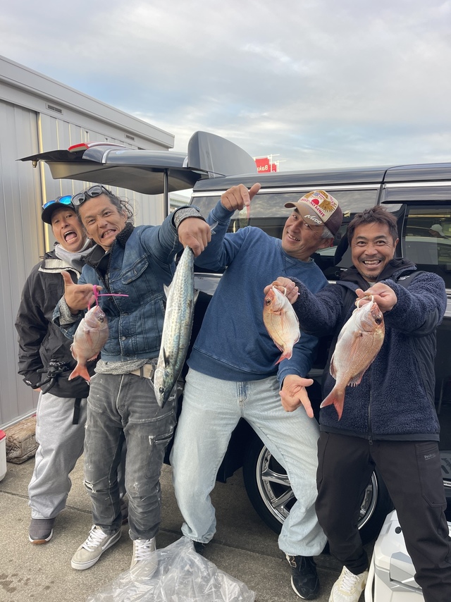 0.30~1.40kg 1~4匹 船:四畳半 ターゲット:マダイ(タイラバ) コース:乗合 釣果::::1~4枚計21枚0.3㎏~1.4㎏ 外道:ホウボウ、スズキ 本日良い人4枚は2名^^ レンタル初心者は3枚! 2025年初釣りは8人全員釣れて良かったです^^ 皆様ありがとうございました!! タイラバ初心者&初挑戦は レンタルをオススメしております!! 釣れますよ~^^ 安全運航の為大潮回りは両舷流しを基本とします、大潮回りの土曜日は乗合を優先します *12月&1月の予約を受付中です