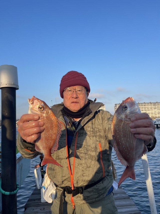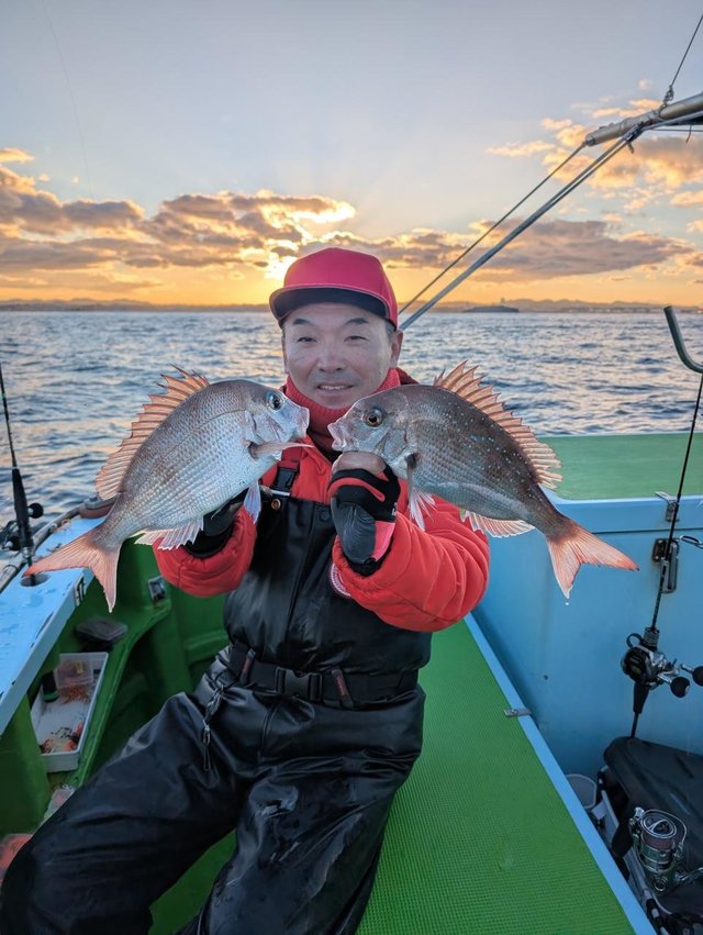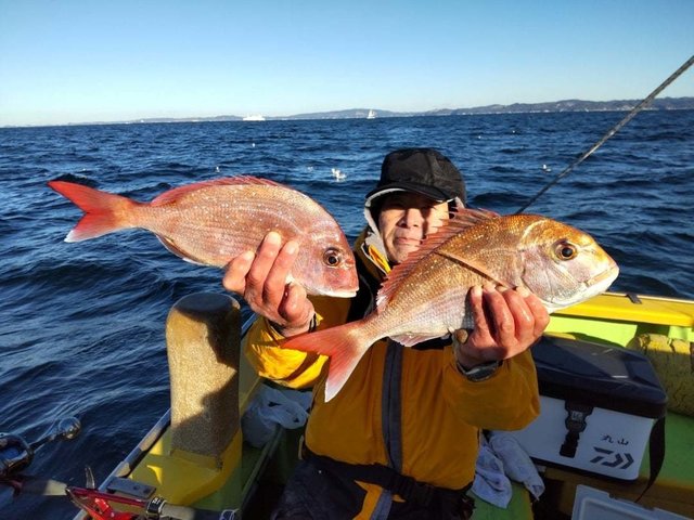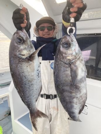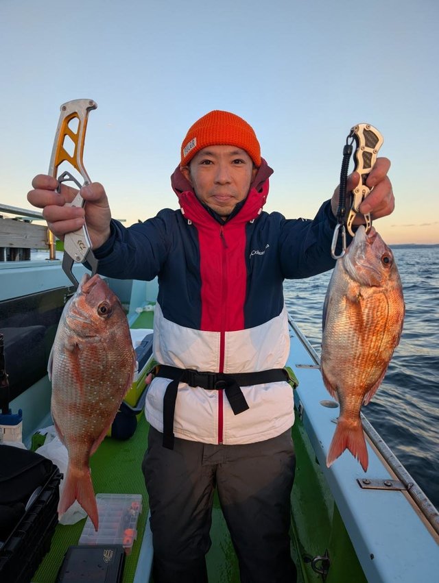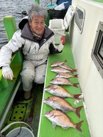 本日はご予約集まり出船できました、ありがとうございます。 潮変わり頃と転々と移動した先でポチポチっとアタリが出ました。 手の合った方は連チャンするシーンもありで数が伸びました。 サイズは大から小までバラエティーに(笑) 今日は北東風の影響で波があり、残念なバラシも結構目立ちました。 船中9名様で6名様は本命確保に成功!ほかの方はアジやクロダイ、イナダなどでお土産は確保できたと思います。