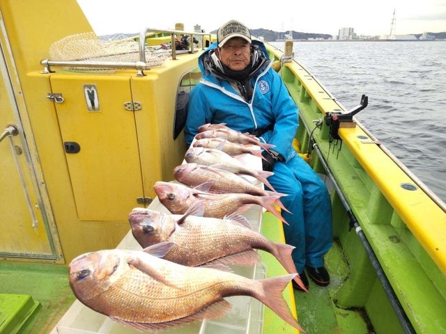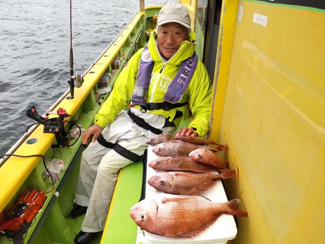 (ブリ)マダイ 0.40~3.80kg 0~3匹 アジ 本日はご予約集まり出船できました、ありがとうございます!! 朝と帰り間際の移動先でポチポチっと型を出して、船中5名様で6枚確保に成功いたしました。 が、残念ながらの方もお二人ほど・・・ごめんなさい、早めのリベンジお待ちしています。 良型も出ていますので、細ハリスは厳禁、仕掛けのチェックやドラグの調整はまめにお願いします。 本日のご乗船誠にありがとうございました。
