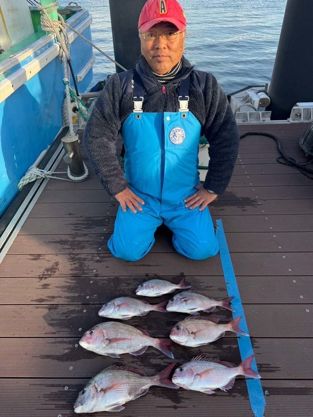 (ブリ)マダイ 0.40~2.30kg 0~3匹 アジ クロダイ 今日はご予約集まり出船できました、ありがとうございます。 あちらこちらと転々と移動しながらの拾い釣りで、良型交じりで釣果になりました!! またゲストには5㎏のワラサもヒット!!同船者さんの協力もあって無事に確保できました、ありがとうございます。 半数以上の方が本命確保に成功しましたが、残念ながらの方も数名・・・ごめんなさい、早めのリベンジお待ちしています。 反応はちらほらとみられているようなので、今後に期待しましょう。