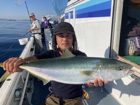 (ブリ)マダイ 0.50~3.30kg 0~3匹 アジ 休み明け、少数精鋭で出船できました!!ありがとうございます。 あちらこちらと転々と駆けずり回りながら、なんとか釣果には持ち込めました。 最大3.3㎏の他に2.1㎏も確保に成功、ゲストのアジは中~大型で皆様にもれなくまわりました。 他に良型のハリス切れが数回、すっぽ抜けバラシもありましたので、ちょっと残念です。
