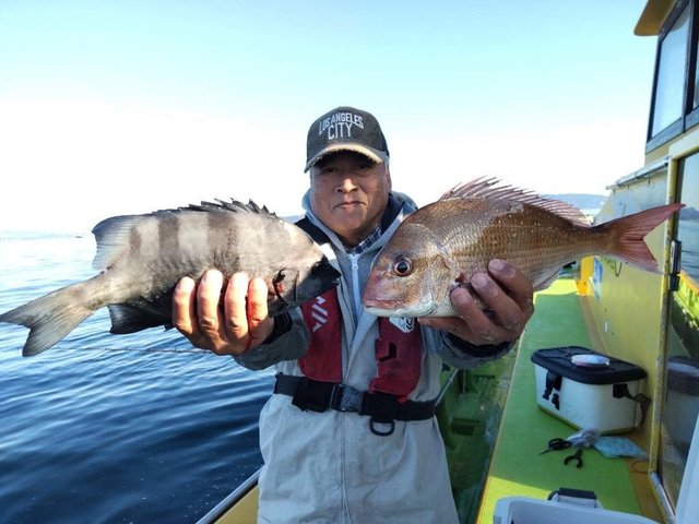 (ブリ)マダイ クロダイ 真鯛五目出船。真鯛何とか釣れました!!魚種多彩でした。