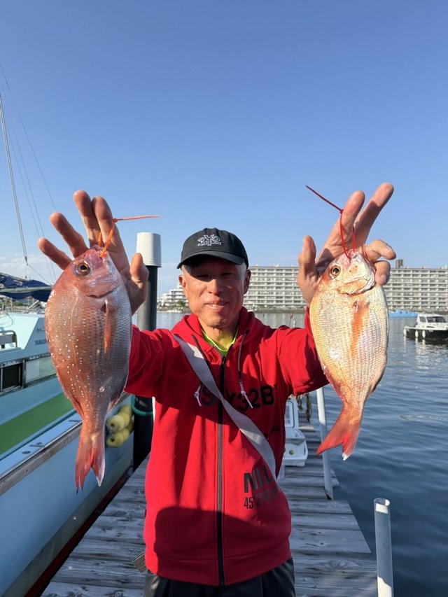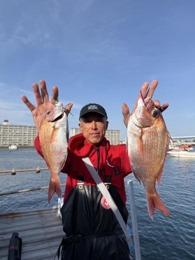 マダイ 0.40~2.60kg 1~4匹 ホウボウ タチウオ タイ(ひとつテンヤ)船。タイラバ&ひとつテンヤ船今日はお客様10名で出船して全員ゲットでした!!!トップ4枚が2人、3枚が3人、2枚が2人、1枚が3人で船中24枚!今日も好調でした!外道はホウボウ、タチウオ、カサゴでした。