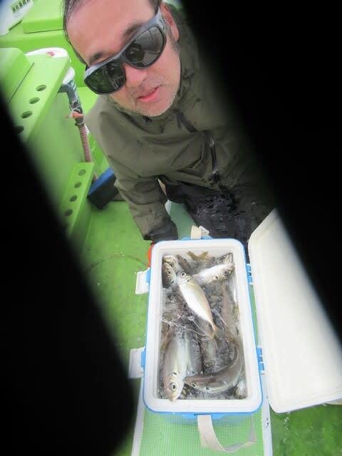 合計4匹 アジ 17~27cm 50~101匹 クロダイ 0~2匹 シロギス 12月13日の土曜日もLTショートアジ船の出船ができました~♪(^^)。 お越しになられた釣り人の皆さま、誠にありがとうございましたm(__)m。 冷たいグレーの曇り空の一日で、朝は北東の風が少し吹いてチョイポチャな海上は後半は穏やかな釣り日和になりました~♪(^^)。 そんな本日も赤灯沖でサービスタイムも長く続き、絶好調持続中で~す♪(^o^)v。 スペシャルゲストの激ウマ脂ノリノリクロダイ&ヒラメも釣れて、 20~25㌢前後の中アジが主体で皆さんにバッチリおかずは釣れました♪(^o^)v。 トップは101尾、二番手78尾、三番手76尾、四番手60尾、バチコンの方が50尾でした(^^)♪。