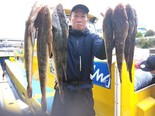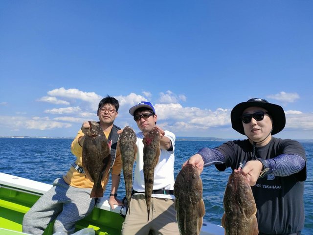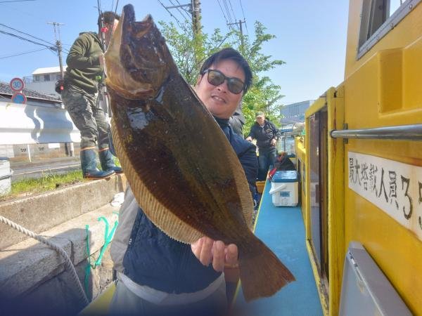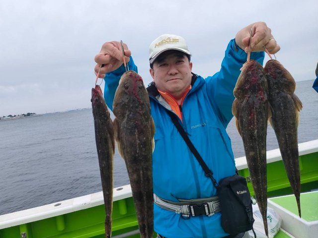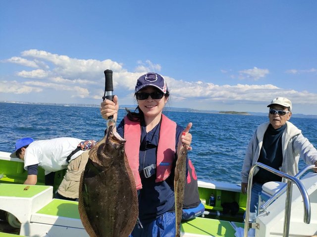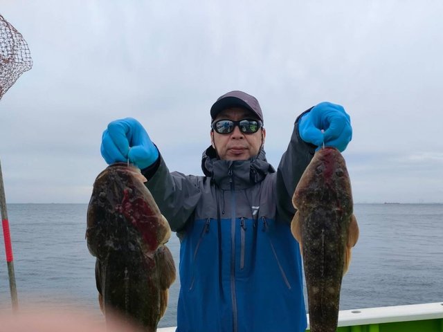 竿頭3匹 マゴチ 35~58cm 1~8匹 マゴチひらめ船。 ヒラメ 良い人3枚最大3㌔級。 16名様お集まりいただき出船 南西強風で早めのメインポイント引きあげでしたが、大幅な水温低下で活性は低く感じたが、マゴチは全員ゲット、大ヒラメも浮上しました。 それにしても、マゴチ道具のウルトラライトタックルでの大ヒラメきょーれつ過ぎです。
