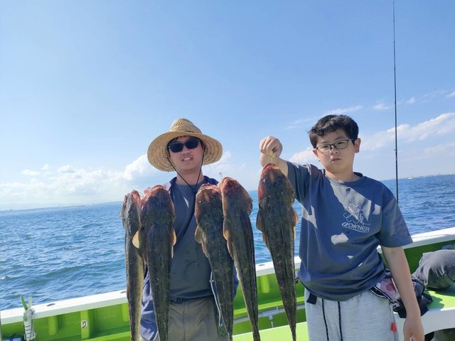 合計2匹 アジ 17~27cm 44~106匹 クロダイ サバ イシモチ 12月10日の水曜日もLTショートアジ船の出船ができました~♪(^^)。 お越しになられた釣り人の皆さま、誠にありがとうございましたm(__)m。 朝から冬晴れの穏やかな最高の釣り日和でした~♪(^^)。 そんな本日は赤灯沖でサービスタイムも長く続き、絶好調でした~♪(^o^)v。 スペシャルゲストの激ウマ脂ノリノリクロダイ&ヒラメも釣れて、20~25㌢の中アジが主体でバッチリおかずは釣れました♪(^o^)v。 トップは106尾、二番手92尾、三番手62尾、バチコンが44尾でした(^^)。
