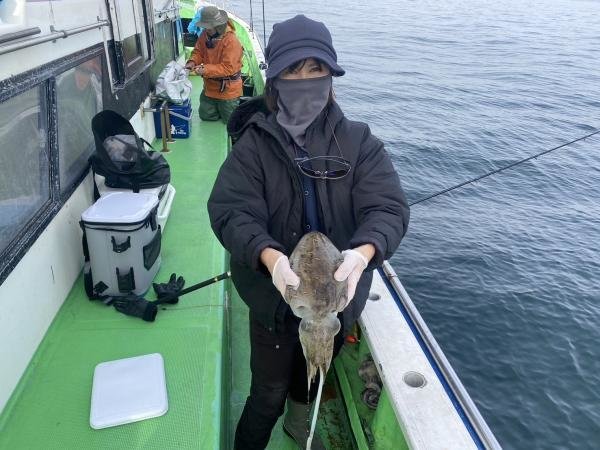 (カミナリイカ)スミイカ マルイカ 0〜2杯、350〜550g。 モンゴウ1杯含む。他にマルイカ。テンヤ25号、ダウンショット25号。現在エビ餌でやってますので、シャコはありません。