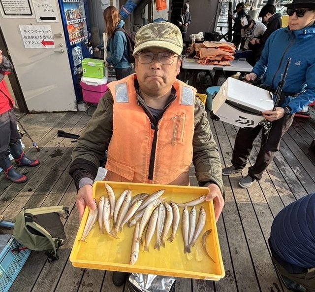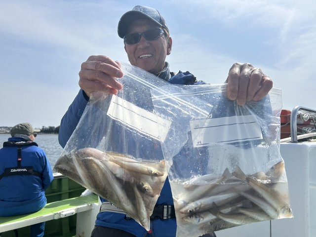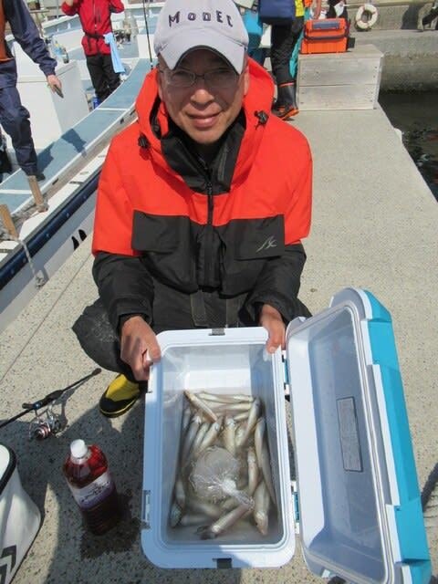 12~23cm 15~124匹 ショートシロギス船。シロギス船は盛況!ありがとうございました! 中型以上多く良型もポツポツとまじって1日ポツポツとアタリ続き好調でした! トップは1本竿で高校生が124匹!2番手91匹。 35~40匹前後の方が多かったです。 外道にホウボウ、イシモチ、小鯛など ※フグはかなり少なくなり釣りやすくなりました! ・胴付き・天秤仕掛けどちらも好調です、お好みで!
