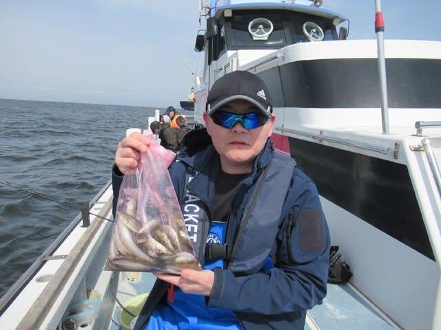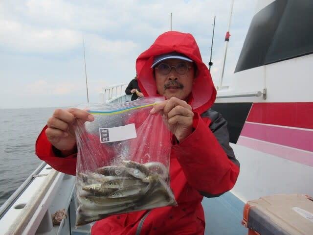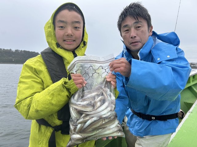 12~22cm 2~141匹 ホウボウ ショートシロギス船。シロギス船は大盛況!ありがとうございました! 中型中心に1日ポツポツとアタリ続き好調でした! トップは高校生が1本竿で141匹!2番手は106匹、3番手96匹。 30匹前後の方が多かったです。 写真の子供さんは17匹と31匹釣りました! 外道にホウボウなど