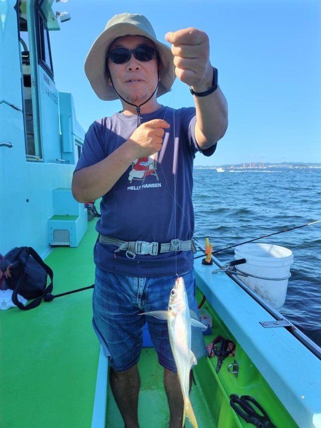 (マアジ)20~44cm 15~56匹 7月22日の火曜日は、乗合いLTショートアジ船で出船ができました~♪(^^)。 お熱い中、お越しになられた釣り人の皆さま、誠にありがとうございましたm(__)m。 南風がそよぐ、晴れて青空が映える夏の穏やかな釣り日和でした♪(^^)。 そんな本日も、八景沖の少し深いポイントから攻めていき、 後半は赤灯沖へ移動してもポツポツと25㌢前後の良型アジが主体でシグナルを拾い釣りで、皆さんにバッチリおかずは釣れました♪(^o^)v。 デカアジ44㌢も上がり平均サイズが良く、皆さんに引きを楽しんでもらえました~(*^^*)。 トップは56尾、二番手34尾でした♪(^^)。