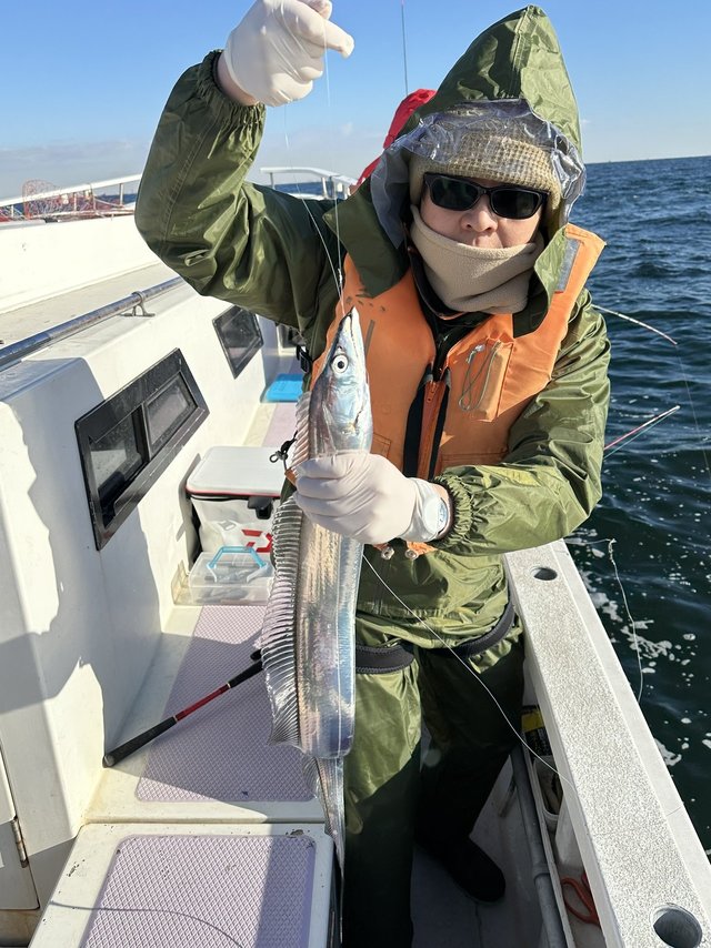(マアジ)16~25cm 0~11匹 タチウオ 70~110cm 0~10匹 イシモチ カサゴ 【タチウオ・アジリレー】風向:北。波の状況:低い。タチウオは朝のうちアタリ少なくイマイチでしたが、潮変わりのタイミングでアタリが増え、中型サイズ主体に釣れました。後半のアジはどのポイントもうまくハマれず型見た程度となりました。イシモチ、カサゴ交る。