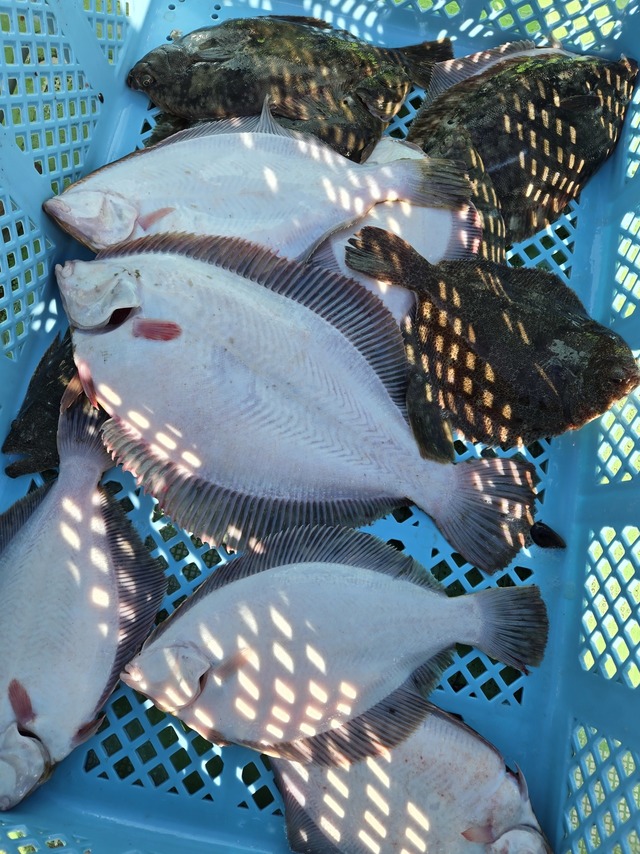 (マアジ)16~35cm 20~63匹 クロダイ2枚、イシモチ混じりでした。 寒さ対策、船酔い対策は万全にお願いします。 港には、遅くとも6時40分着でお願いします。 江戸前カレイ直売しています。お問い合わせ下さい。