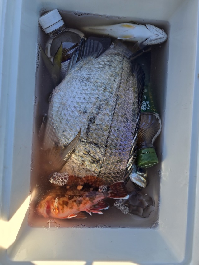 (マアジ)16~35cm 7~30匹 クロダイ3枚、カサゴ混じりでした。 船酔い対策は万全にお願いします。