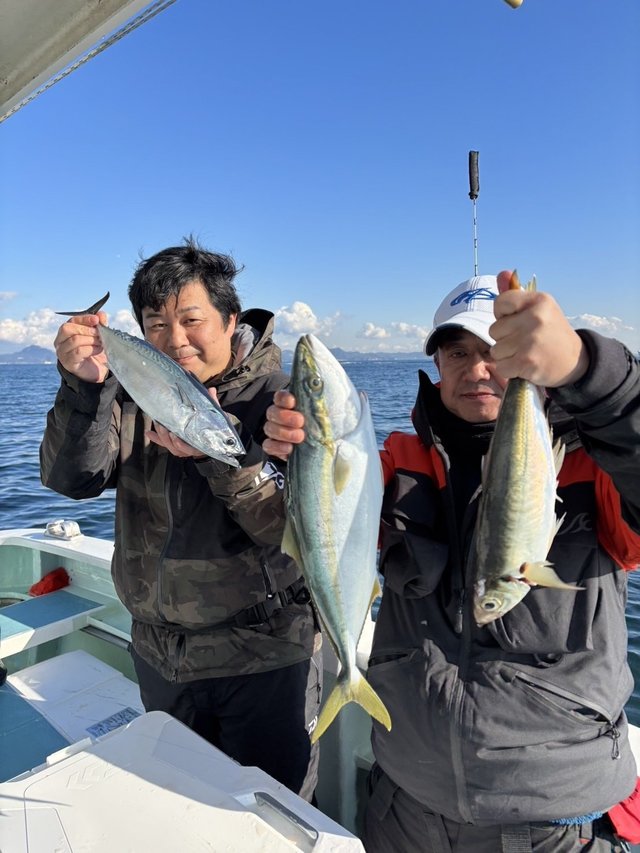 真鯛五目出船でした。 非常に厳しかったですm(__)m 真鯛は顔見た程度で黒鯛、良型アジが混じりました。 最後まで一生懸命やって頂きましたが思い届かず渋い結果となってしまってごめんなさいm(__)m リベンジお待ちしております。 親父船は泳がせハモノ狙いでワラサ、真鯛と顔見れてお土産くらいにはなったみたいです♪ 本日もご乗船頂きありがとうございました。