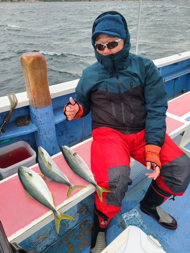 0.80~1.50kg 0~1匹 ワラサ 3.00~4.50kg 0~3匹 イナダ 1.00~2.00kg 0~1匹 2隻で出船しました。マダイは顔見た程度でしがイナダ、ワラサがポツポツ釣れ皆様お土産になりました。 オモリは80号 マダイ用ハリス 4~5号8m前後 幅広いハリスをご用意しておいてください。