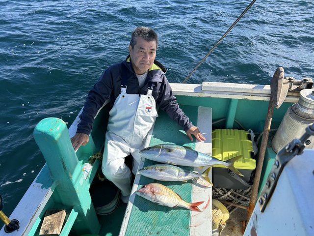 0.80~1.50kg 0~3匹 前半は風強く釣りにくい場面が続きましたが、マダイはポツリポツリ当たり、バラシもありましたがマダイトップ3匹、次いで2匹が2人と釣ることができました。他にヒラソウダ混じりでした。今日はワラサがポツポツ混じって来ましたので、ワラサ用の仕掛も用意して下さい。本日もご乗船いただきありがとうございました。