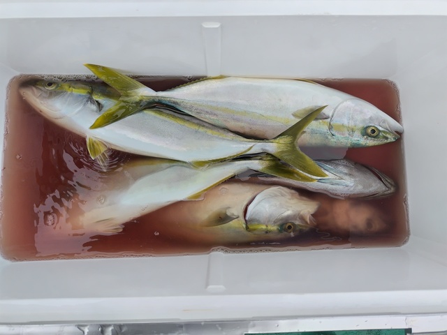 0.80~1.50kg 0~3匹 ワラサ 3.00~4.50kg 0~1匹 イナダ 1.00~2.00kg 0~3匹 マダイはポツポツと釣れトップ3枚!ワラサも釣れ、イナダが多数交じりました。 オモリは80号 マダイ用ハリス 4~5号8m前後 幅広いハリスをご用意しておいてください。