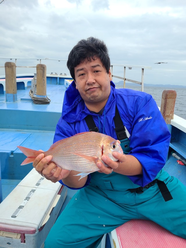 ヤリイカ 3~9匹 今日はヤリイカ船で出船しました。 朝一、反応発見し当てるも、お触りや足だけのこり連発で苦戦。 ゲソだけ残ってくることが多く、中々数は伸びませんでしたが貸し竿さん含めヤリイカ全員GETできました。 ゲストに良型真鯛GET。イカの泳がせもオススメですね。 本日もありがとうございました。