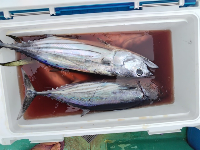 0.30~0.40kg 合計3匹 カイワリ 24~28cm 合計45匹 イサキ 23~30cm 合計140匹 ヒラソウダ 40~43cm 合計4匹 ウマズラハギ 45cm 合計1匹 ウィリー五目釣りに出船しました! 今日も朝からカイワリポツポツとダブルトリプルとヒットし楽しめてました!イサキが特に好調でクーラも賑わいました。他にヒラソウダ,マダイ,サバ,マダイ等が混じり連日楽しめてます。ご予約お願いします??♂?
