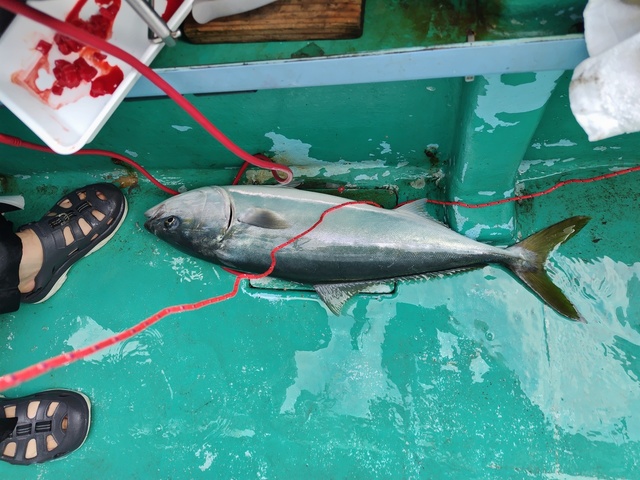 0.80kg 0~1匹 ワラサ 3.00~4.00kg 0~2匹 アジ サバ ヒラソウダ 平均1.00kg 中潮、明日は小潮。 いつもご覧いただきありがとうございます。 本日も泳がせ釣りでは3-4kgワラサをゲット。 活き餌のアジも泳がせ向きサイズが釣れています。アジ釣りでもタナ位置は命。数mのズレがあるとアタリ数が減りますから道糸のマークはよく確認をするようにお願いいたします。 08:00-10:00の時間帯はコマセ釣りでもワラサのヒットがあるゴールデンタイム。今後も期待できそうな流れになってきています。 海況:潮色と流れ:薄濁、ゆるい。 風向きと強さ:北東、弱い。 波高:0-0.5M。