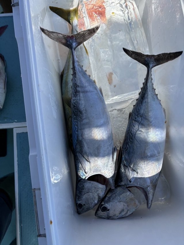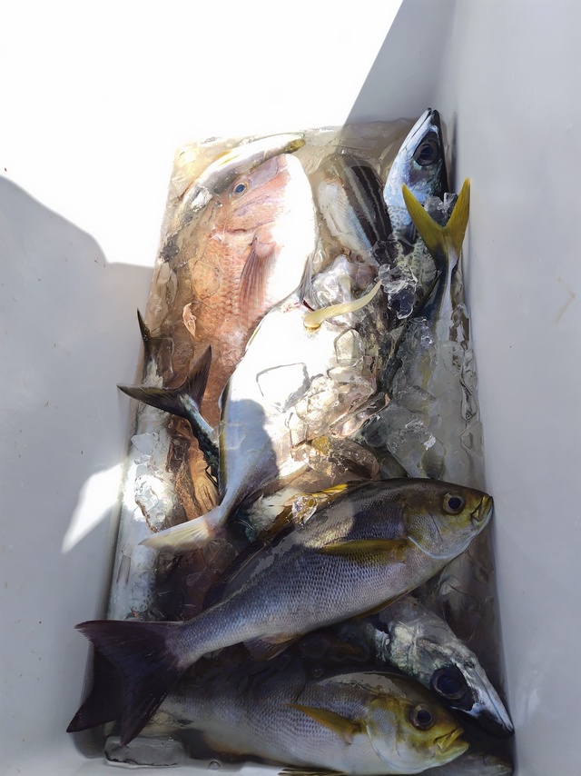 0.40~0.80kg 0~3匹 イナダ 40~45cm 2~5匹 カイワリ アジ イサキ ヒラソウダ 真鯛五目出船でした。 幹事さん以外全員釣り初めてでフルレンタルでの挑戦でした! 真鯛にイナダ、カイワリ、良型アジ、イサキと五目釣り達成で今晩の宴会のアテになりました^^ 幹事さんも皆んなの面倒見たりと大変な釣行になってしまいましたがありがとうございましたm(__)m 親父船は真鯛トップ3尾!こちらもイナダも混じってお土産になったみたいです^^ 本日もご乗船頂きありがとうございました。