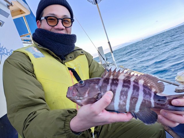 0.80~1.30kg 0~2匹 ヒラメ 4.00~4.00kg 0~1匹 ワラサ 3.50~4.00kg 0~1匹 イナダ クロダイ アマダイ 23~40cm 0~3匹 ホウボウ トラギス レンコダイ カワハギ 15~34cm 3~4匹 カサゴ 小潮、明日も小潮。 【泳がせ】1月の寒ヒラメ、本格開幕。4kgの座布団、釣れました。最近はヒラメの調子が上がってきていますね、今回も肉厚な4kgの大型をゲット。 さらに3-4kg級ワラサも2本が混じっています。活き餌が暴れ出し、一気に竿先が海面に突き刺さるあの瞬間……泳がせの醍醐味ですね。 【甘鯛】水深70-80mを中心に、40cmオーバーの良型も登場。小型の甘鯛は少なく30〜40cmの「お土産サイズ」がポツポツとコンスタントにヒットしました。