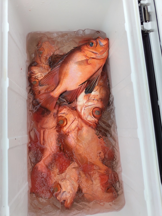 0.30~4.10kg 0~3匹 【マダイ】 0-3枚。300-4100g。船中5枚。外道イシモチ、カサゴ、ホウボウ。最後に3人釣れました。明日6/15は予報悪く出船中止です。