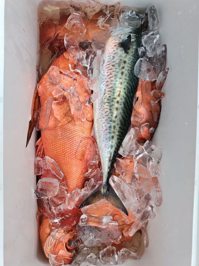 2.00~5.50kg 0~2匹 イサキ 30~50cm 25~35匹 サバ ウマヅラ アジ 25~40cm 合計30匹 メジナ アカメバル 6月の出船時間は5:30出船。 6月からはイサキ釣り解禁、イサキ乗合も始まります。 いつもご覧いただきありがとうございます。 久しぶりに大型真鯛5.5kgが釣れました。さらに3.5kgの大型も。 でかい、ごつい。 6月に入っても3kg前後の真鯛が釣れていますが、5kg級の大型ゲットにもまだチャンスがありそうですね〜。 人気のイサキ&アジの2本立て。イサキもアジも好調が続き、2点・3点掛けのヒットがあり、開始からイサキはヒットが続き30匹、40匹、50匹と数を伸ばして入ります。後半から狙ったアジも好ヒット。 クーラーいっぱい。 潮色と流れ:薄濁、ゆるい。 風向きと強さ:北東、弱い。 波高:0-0.5M。