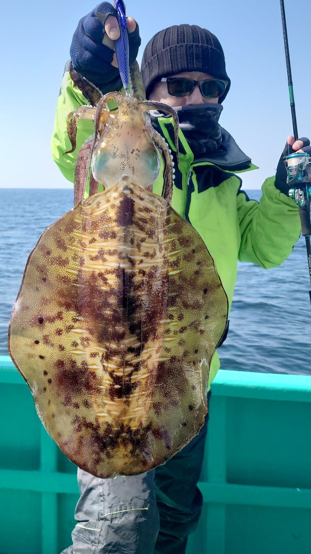 今日はティップランで出船しました。 潮が濁っていて期待したんですが激渋でした。 なんとかキロオーバーのアオリの顔を見ることができました。 途中、鳥山があってイナダが跳ねていたのでジグで遊んでお土産ゲットできました。 アオリは次回に期待しましょう。 今日は乗船ありがとうございます。 お疲れ様でした。