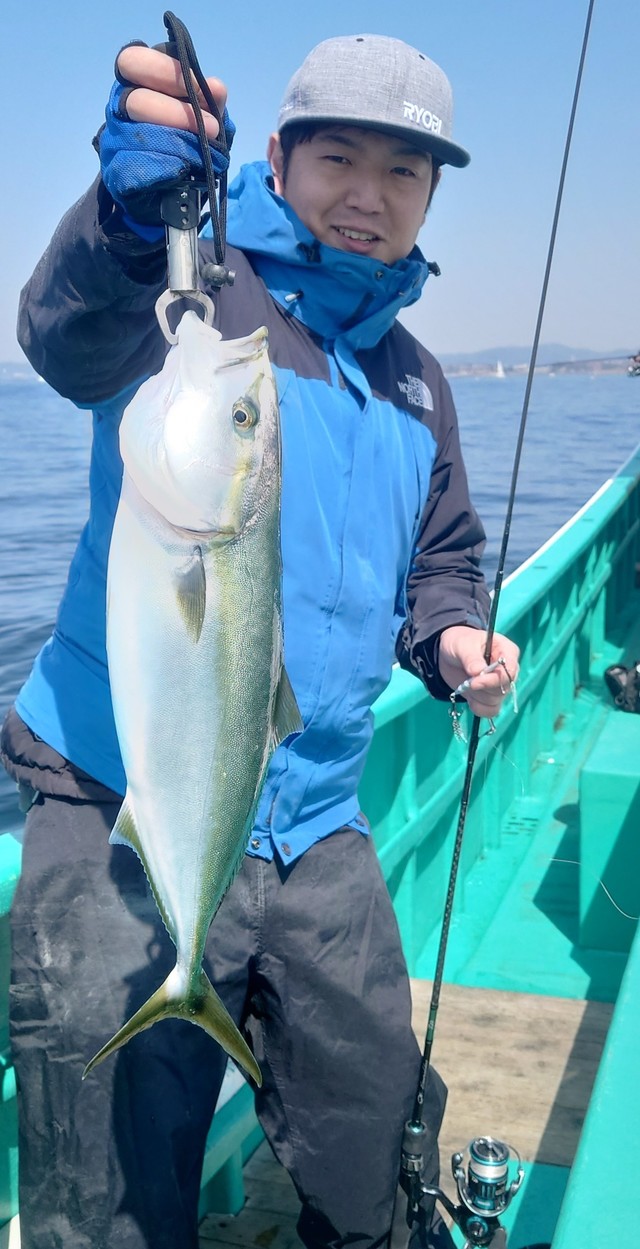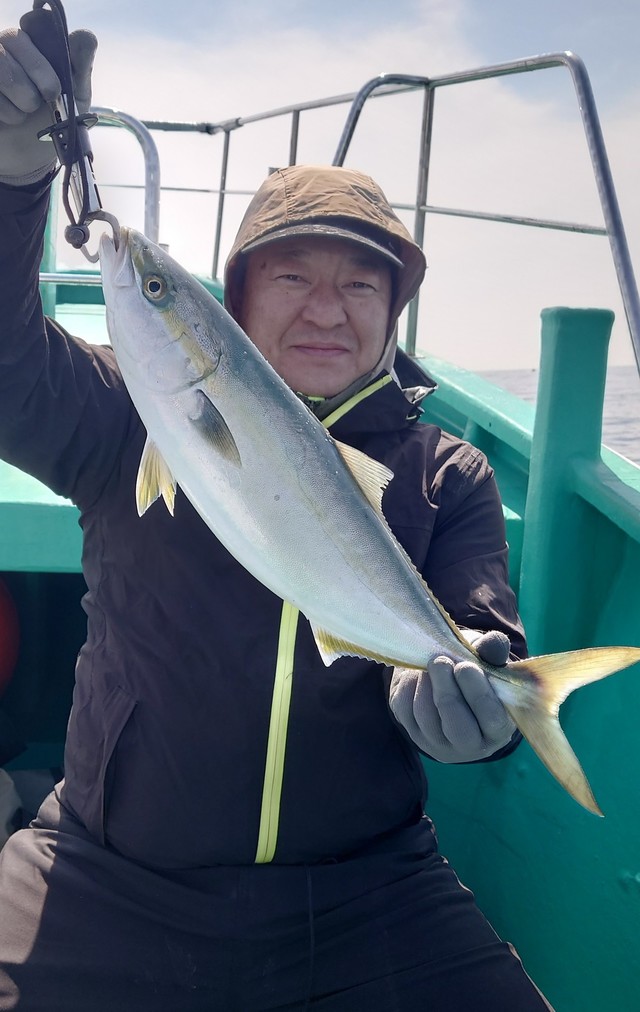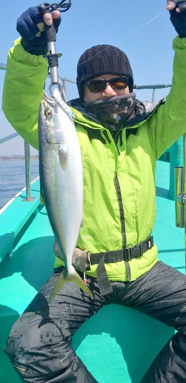 (ブリ)4.60kg 合計1匹 イナダ(ブリ) 1.50~1.80kg 1~2匹 ヒラメ 1.50kg 合計1匹 今日はヒラメ&ジギングに出船しました!朝のうちヒラメらしい当たりで途中でスッポ抜け…鳥山で反応いっぱいでワラサ4.6kgキャッチ出来ました!流しなおしていると良型イナダ1.5~1.8kgが皆さん釣れて1~2本!バラシもあってジギングの方にワラサがヒットするけどスッポ抜けでした。帰り際に何とかヒラメ1.5kgキャッチ出来ました(笑) ご乗船ありがとうございました! 4月土日平日いっぱい空きあります。泳がせ用のイワシ少しあります。お早めにお問い合わせ下さい。