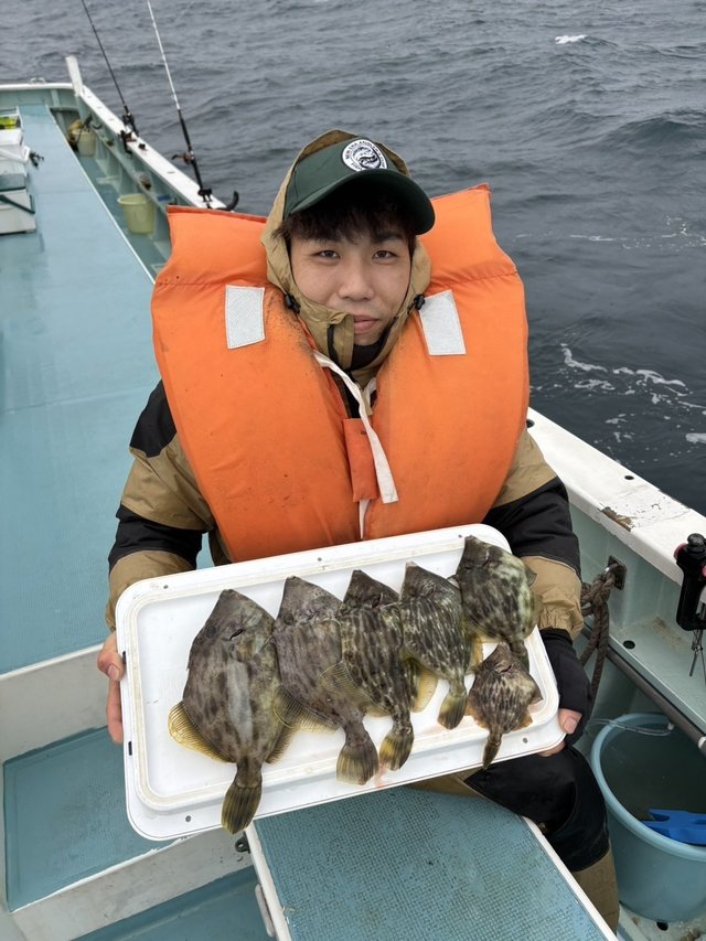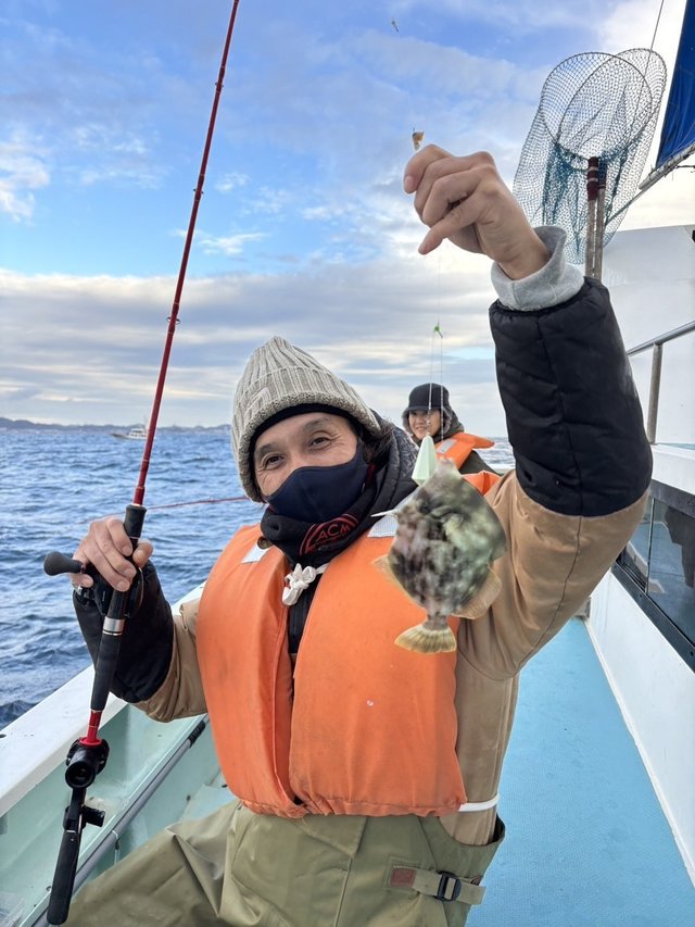 (ブリ)4.00kg 合計1匹 マダイ 0.80kg 合計1匹 朝から雨と風で釣りにくく、バラシもありマダイ、ワラサ共に型見ただけで、混じりはヒラソウダ、サバでした。仕立船10人でカワハギに出船しレンタルが多い中頑張って釣っていただき、釣果は0~6枚でした。22日は予約なく休船とさせていただきます。本日は天候悪い中ご乗船いただきありがとうございました。