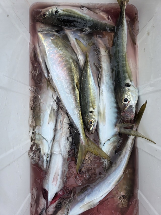 今日6日も朝一はいつもの根回りからスタート。仕掛けを下ろすとすぐにアタリが出始め、序盤から入れ食いモードに突入しました。反応の動きは速く、しばらくするとアタリは遠のいてしまったためポイントを移動。 次のポイントでも再びすぐにアタリが出て好調な滑り出しでしたが、ここも時間が経つにつれて反応がしぼみ、さらに浅場へと移動。すると今度は根付きの40cmオーバーの大アジが連発!皆さんしっかりお土産を確保できました。 後半は深場へと移動し、ここでも良型サバとデカアジがそろって入れ食いモードに再突入!終盤まで盛り上がりを見せたところで本日納竿となりました。 今日は泳がせでワラサ、サバ餌でマダイも顔を見せ、端物狙いにも期待が持てる好気配。これからの釣りもますます楽しみです。 皆さまのチャレンジをお待ちしています!