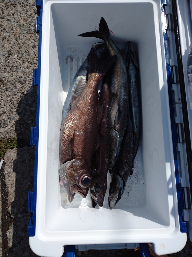 (ブリ)3.50kg 合計1匹 マダイ 0.60~1.10kg 0~2匹 カンパチ 3.70kg 合計1匹 貸竿の方もワラサやマダイが釣れてなんとかお土産になりました