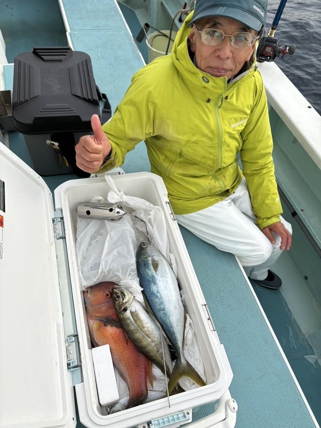 (ブリ)マダイ 0.80~2.20kg 0~1匹 アマダイ 20~47cm 0~4匹 メダイ アマダイ ショゴ マハタ 真鯛五目出船でした。 お客様のご要望で1日深場を攻めさせて頂きました!各所各所で型は見れました!派手には当たりませんでしたがkgアップ2kgアップと顔出してくれました^^ 他にワラサ、メダイ、アマダイ、ショゴ、マハタと五目も達成! 深場のロマンありますね〜 親父船はアマダイ出船でトップ4尾が4名! ポツポツとあがったみたいですね! 本日も寒い中ご乗船頂きありがとうございました。