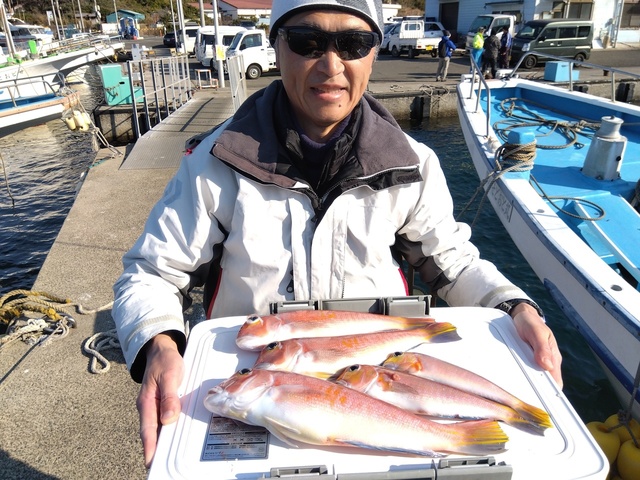 (アカアマダイ)25~42cm 1~6匹 そして今日大活躍を見せてくれたのは アマダイ釣り初チャレンジの12歳の釣りボーイ! 別船だったので 出船前に駆け足でしたが レクチャーをさせて頂きました! アマダイ釣れたら良いな〜くらいで 送り出したのですがとんでもない!!!!!! 早々にアマダイをゲットしたと思ったら 何か目覚めてしまったようで アマダイを連発!&サイズアップ!!!!!! 大船長は少年の事をとにかく褒めていて 手返し、誘い、合わせ、巻き上げ、引き抜き 全てがパーフェクトだったそうです! その親子チーム以外は プロフェッショナルチームだったのですが 少年の無双モードに追いつけず トップ(少年)6尾、次頭4尾(3名様)! もちろん全員安打を果たしたそうです。 40cmアップサイズも目立ったそうです。 2月23日には第2回アマダイ釣り大会があるので この高釣果は期待度が爆上がります! ありがとうございました。水色澄。