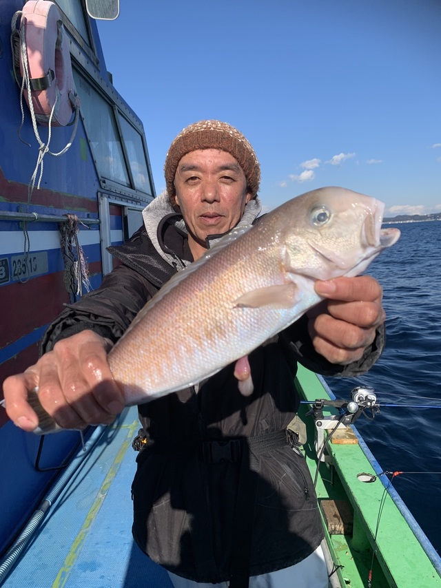 (アカアマダイ)23~44cm 2~6匹 オニカサゴ カンコ カイワリ アラ アマダイ船。新年明けましておめでとうございます。本年も宜しくお願い致しますm(__)m 剣崎沖を転々と狙い、日並良く海上穏やかでしたが沖からのウネリが1日有りました。 1日を通して潮の流れ緩く、前半はなかなか本命の顔見れず苦戦でしたが、後半にかけて良い流しには手の合った方はアマダイ連発し船中ポチポチと拾え、サイズは中型主体に良型&大型44cm・43cm・42.5cm混じりで終日ポツリポツリの拾い釣りでした。 トップ6尾が2名、2番手4尾、裾2尾でオデコ無く全員ゲット出来ました!