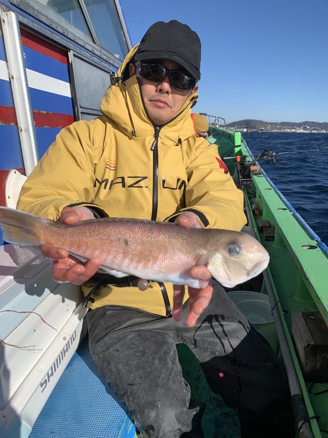 (アカアマダイ)0.20~0.60kg 0~4匹 マダイ 最大1.00kg 0~1匹 イナダ ワラサ アジ サバ クロダイ カサゴ マダイ船。 潮色と流れ:濁りゆるい。 風向きと強さ:北東強い。 波高:1.0-1.5M。 いつもご覧いただきありがとうございます! 真鯛トップ1枚、甘鯛トップ4枚!ワラサのヒット多く、数本をゲット! 真鯛釣り、剣崎沖にワラサの魚群が入っていました! 強烈なヒットが10度を超える回数であり、真鯛仕掛けのため惜しくも切れてしまう場面が多かったものの数本のワラサゲット! 風速10mを超える北風・荒れた海の影響が少なければさらに本数は伸びたか?! イナダも大きいものは2-2.5kgサイズもあり、脂がありますよ〜! 最近は白&黄甘鯛も掛かることがある、人気の甘鯛釣り! 本日はトップ4枚をゲット! 別船マダイ・0.5kg、0-1枚。 リクエスト乗合の日程。 ・1月27日真鯛乗合。 ・1月28日前半に真鯛、後半に甘鯛乗合。 ・1月29日真鯛乗合。 ・1月30日真鯛乗合。 ・1月31日真鯛乗合。 ・2月2日真鯛乗合。 ・2月4日アジの泳がせ乗合。 ・2月8日真鯛乗合。