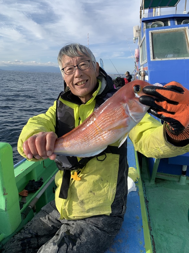 (アカアマダイ)マダイ 0.70~1.75kg 0~2匹 メイチダイ カンパチ カサゴ イサキ サバ イナダ 0~2枚、0.7~1.75kg。 外道:メイチダイ・カンパチ・カサゴ・ イサキ・サバ・イナダ・アマダイ。 佐島沖40~70m。 H様真鯛1.75kgゲットしました!! 大森様真鯛1.5kgゲットしました。お正月に食べて下さい!! 柳澤様アマダイgetしました。松笠揚げ挑戦してみて下さい!! 今日は、北風が弱かったですが、ちょっと寒い1日でした。 本命さんが、何枚かあがって、良かったです。 外道は、少なかったです。 乗船ありがとうございました。お疲れ様でした。 今年1年間、ありがとうございました。 良いお年をお迎えください。 来年もよろしくお願いします。