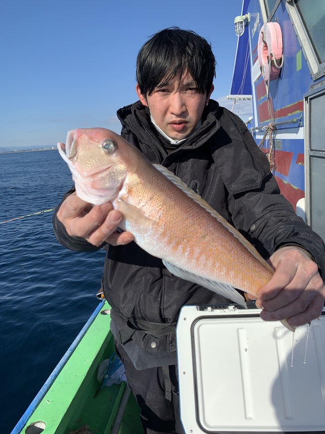 (アカアマダイ)25~47cm 0~7匹 シロアマダイ 23~44cm 0~5匹 チカメキントキ トラフグ イトヨリダイ ★アマダイ五目船 初出船◎◎ 新年明けましておめでとうございます。 本年もたいぞう丸をよろしくお願い致しますm(__)m 初出船、ベタ凪の中2隻で行ってきました。 朝イチのシロアマダイ狙いは短時間ながらトップ5匹!!良型も上がって最高のスタート◎ その後のアマダイ狙いもアマダイが上がると中良型主体でデカアマダイは47㎝を2匹ゲット!他に40㎝オーバー3匹上がりました。 トップ7匹、2番手6匹の方2名とこちらもいい感じでした!